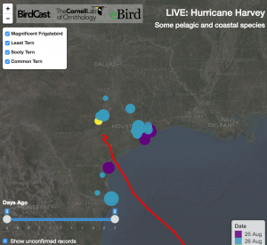 Hurricane Harvey came ashore on the central Texas coast last week with an almost unimaginable combination of destructive winds and rain. Team BirdCast has been tracking the avian fallout from this storm, perhaps a brief respite for some to escape from the horrible scenes of the devastation in Harvey's wake. Read more...