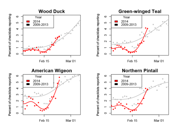 In the past decades birders have become increasingly aware of rapid changes in the phenology of bird movements in parts of the United States, noting what species are early, when birds are late. The power of eBird for highlighting these patterns has increased dramatically, and for the first time we can start to quantify and […] Read more...