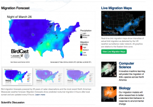 BirdCast has been working toward automatically predicting and analyzing bird migration across the continental US, and we now unveil automated forecast maps and live migration maps. Welcome to the future of migration monitoring, please explore the new visuals and tune in frequently for discussion about movements! Read more...